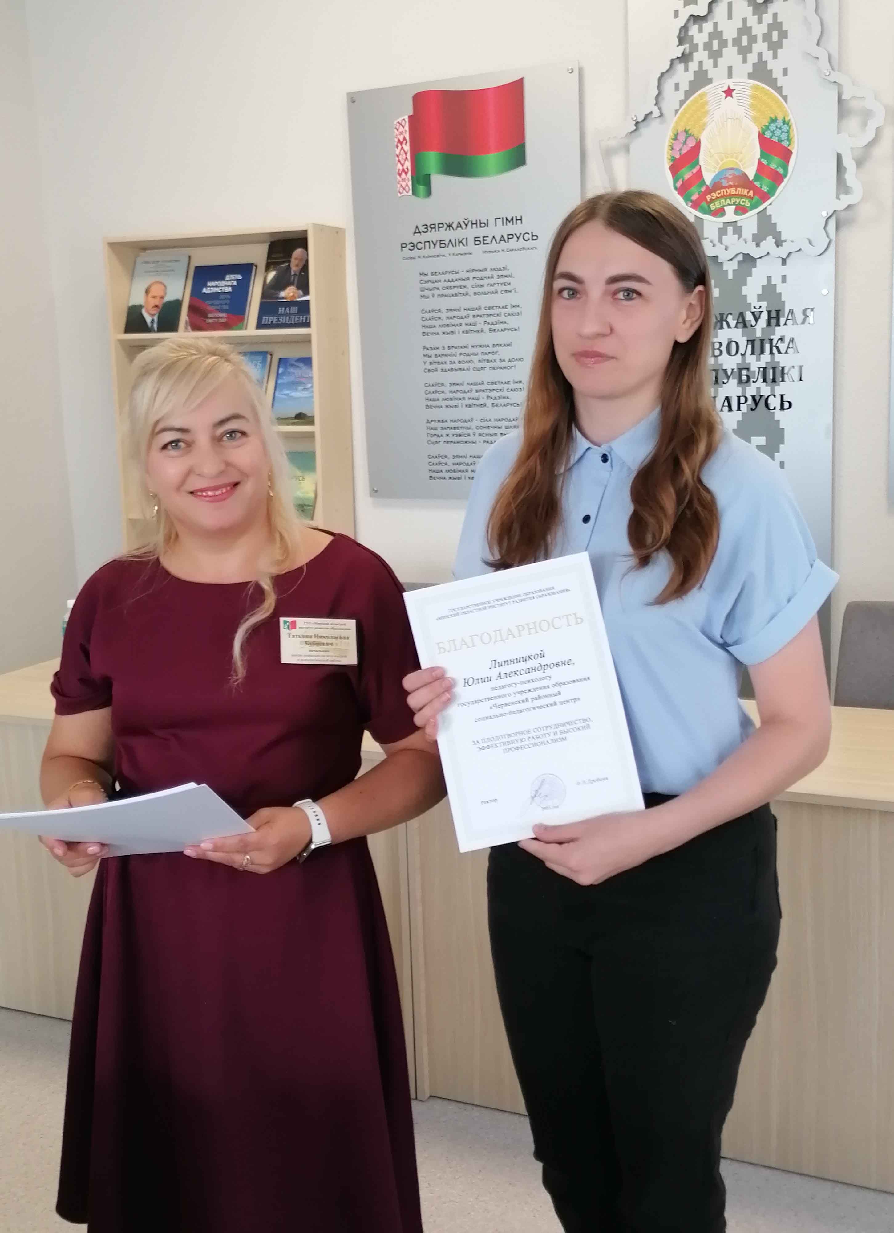 Бизук Марина Михайловна, методист центра социально-педагогической и психологической работы Минского областного института развития образования обратила внимание на роль педагога-психолога и педагога социального в организации работы по профилактике правонарушений и преступлений среди несовершеннолетних в учреждении образования. Она ознакомила с изменениями в организации работы Совета учреждения образования по профилактике безнадзорности и правонарушений несовершеннолетних, рассказала о значении повышения педагогической и психологической культуры родителей по формированию ответственного, позитивного родительства через участие в реализации республиканского социально-педагогического проекта «Родительский университет».
