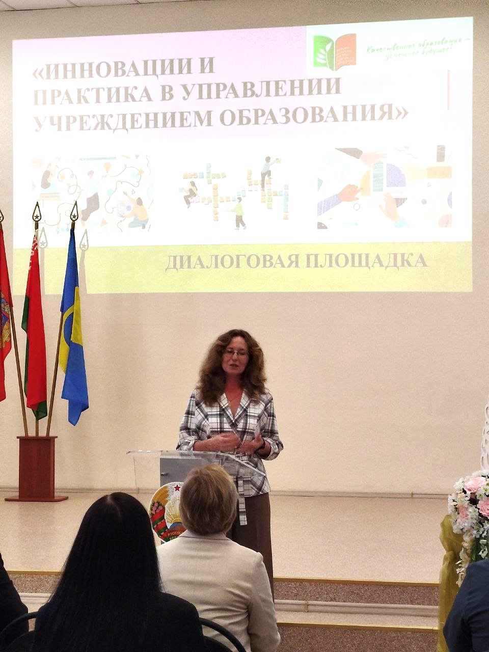 С технологией успеха управленческой деятельности и организацией единого образовательного пространства выступила Саматыго Юлия Владимировна, директор ГУО «Лошницкая гимназия Борисовского района».