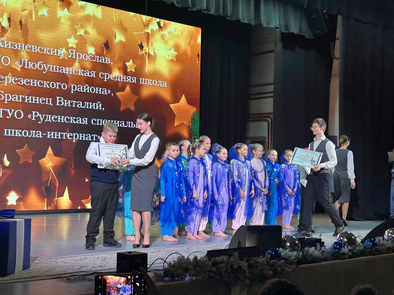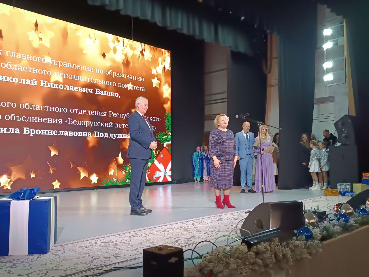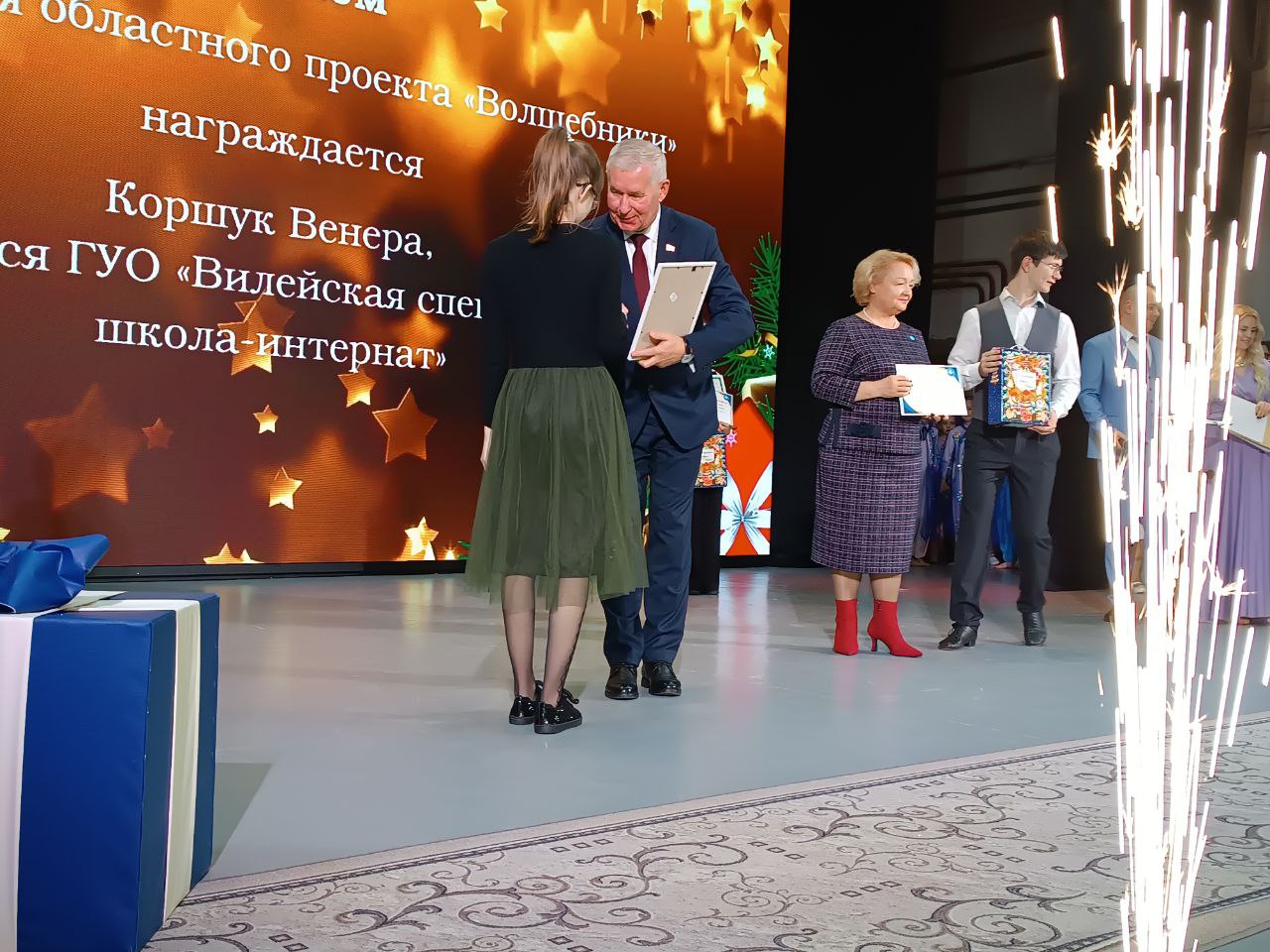 Поздравили и вручили награды участникам творческого проекта начальник главного управления по образованию Минского облисполкома Башко Николай Николаевич и директор Минского областного отделения Республиканского общественного объединения «Белорусский детский фонд» Людмила Брониславовна Подлужная.