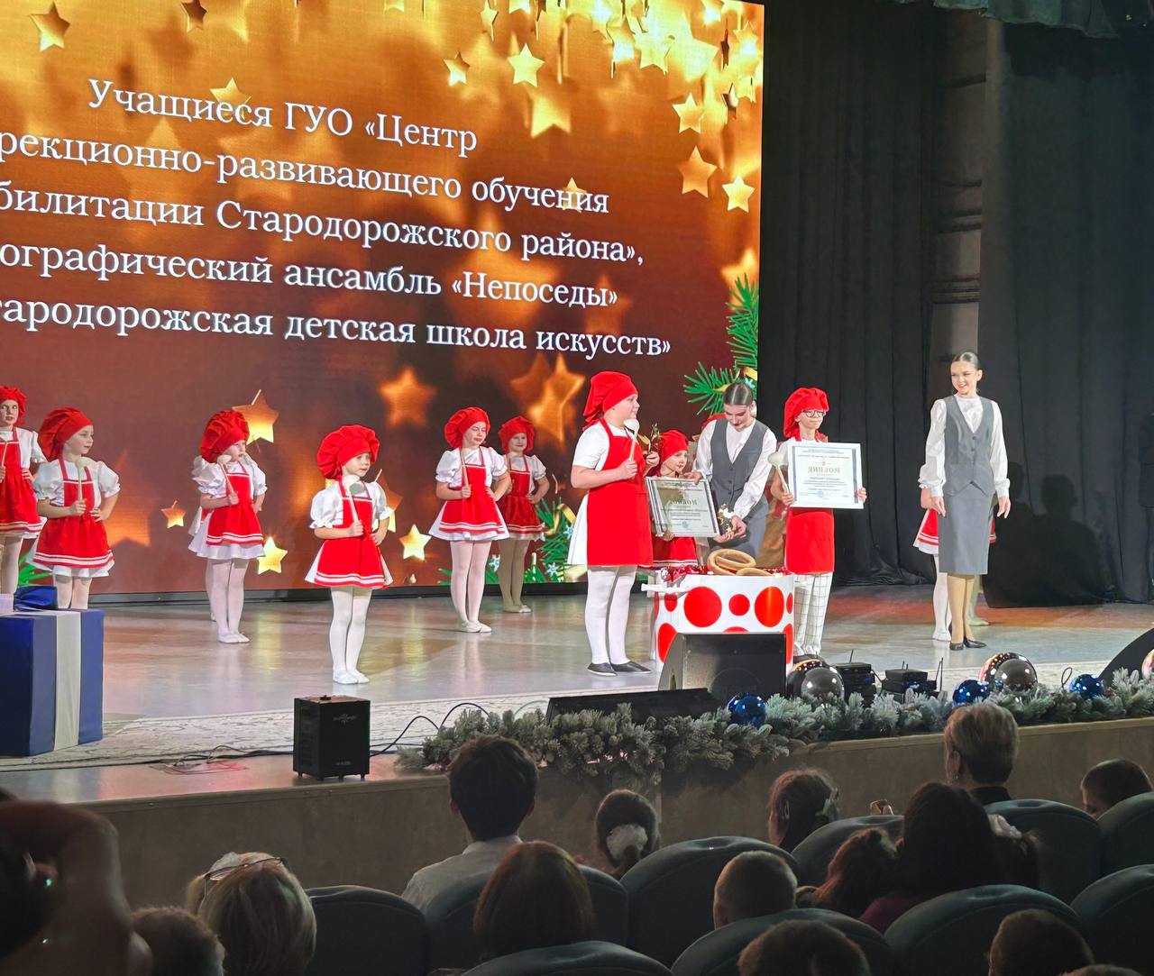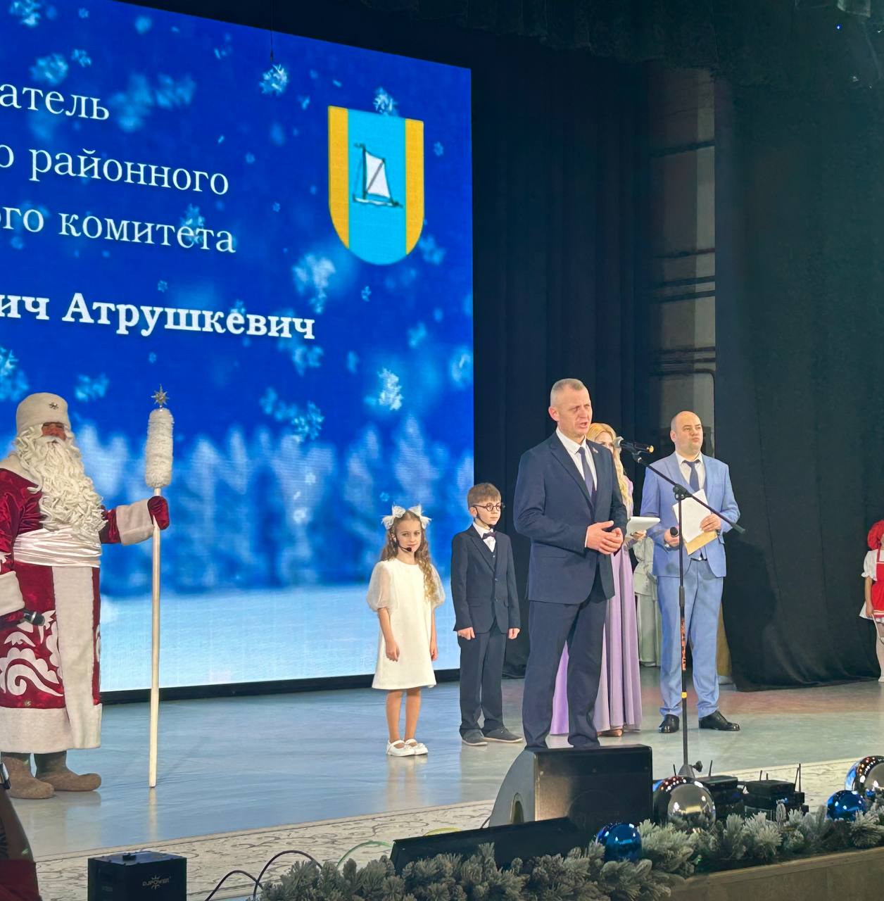 С приветственными словами к участникам фестиваля обратился председатель Столбцовского районного исполнительного комитета Андрей Михайлович Атрушкевич. Со сцены Старосверженского центра культуры Андрей Михайлович вместе с Дедом Морозом объявил о старте новогодней благотворительной акции «Наши дети» в Минской области!