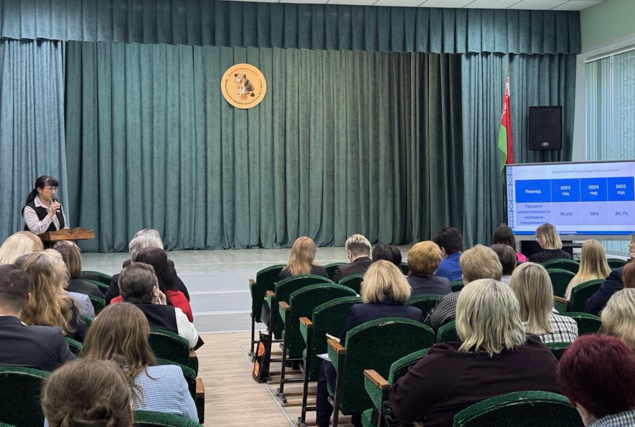 На областном семинаре в Молодечно «Совершенствование работы в части закрепляемости молодых специалистов на первом рабочем месте и организации целевого приема» прошла серия мастер-классов. Участники попробовали сконструировать урок, составить портфолио учащегося, определить главные компетенции педагога-новатора.