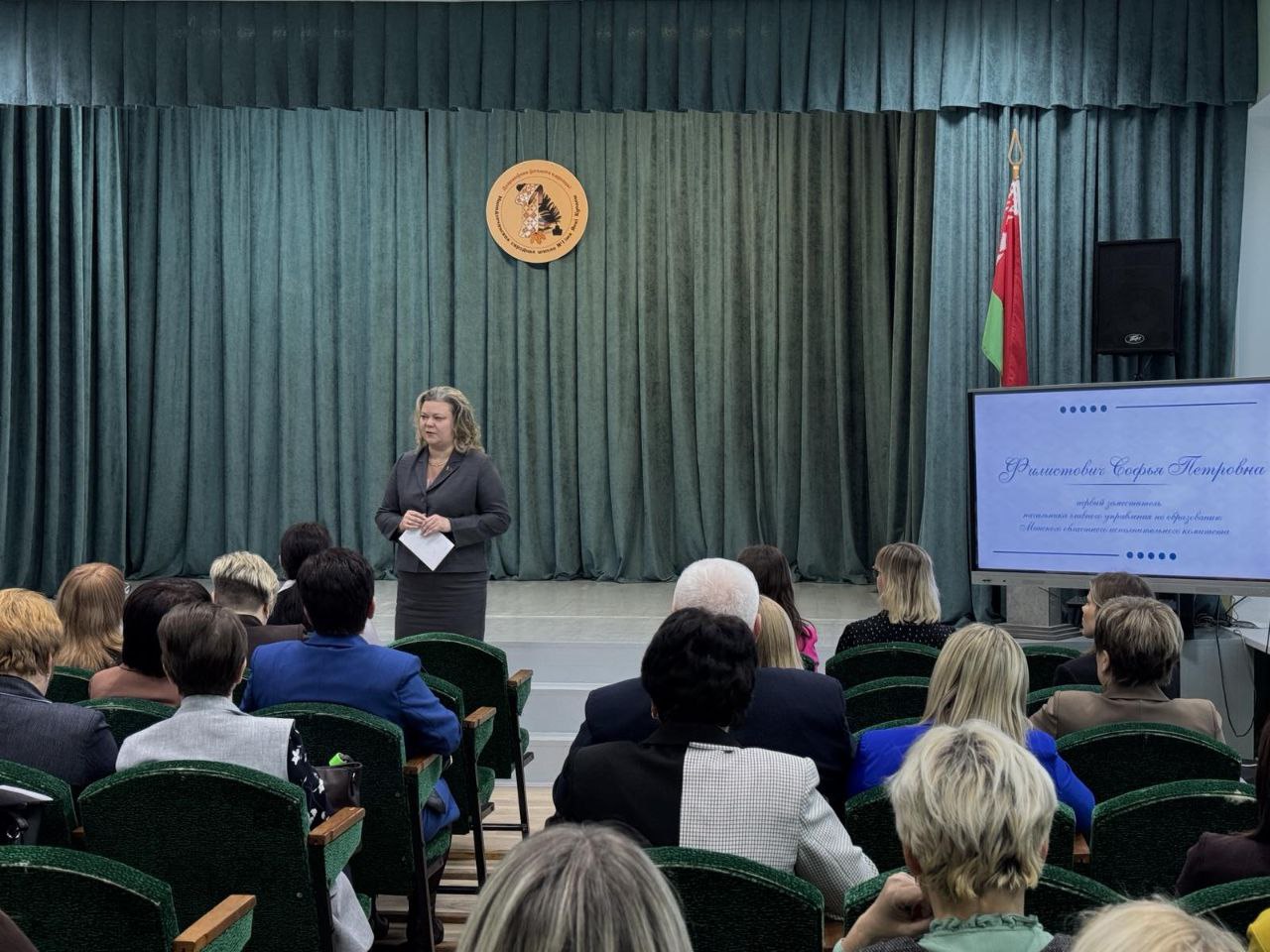 С приветственным словом к присутствующим обратилась первый заместитель начальника главного управления по образованию Минского областного исполнительного комитета Филистович Софья Петровна.