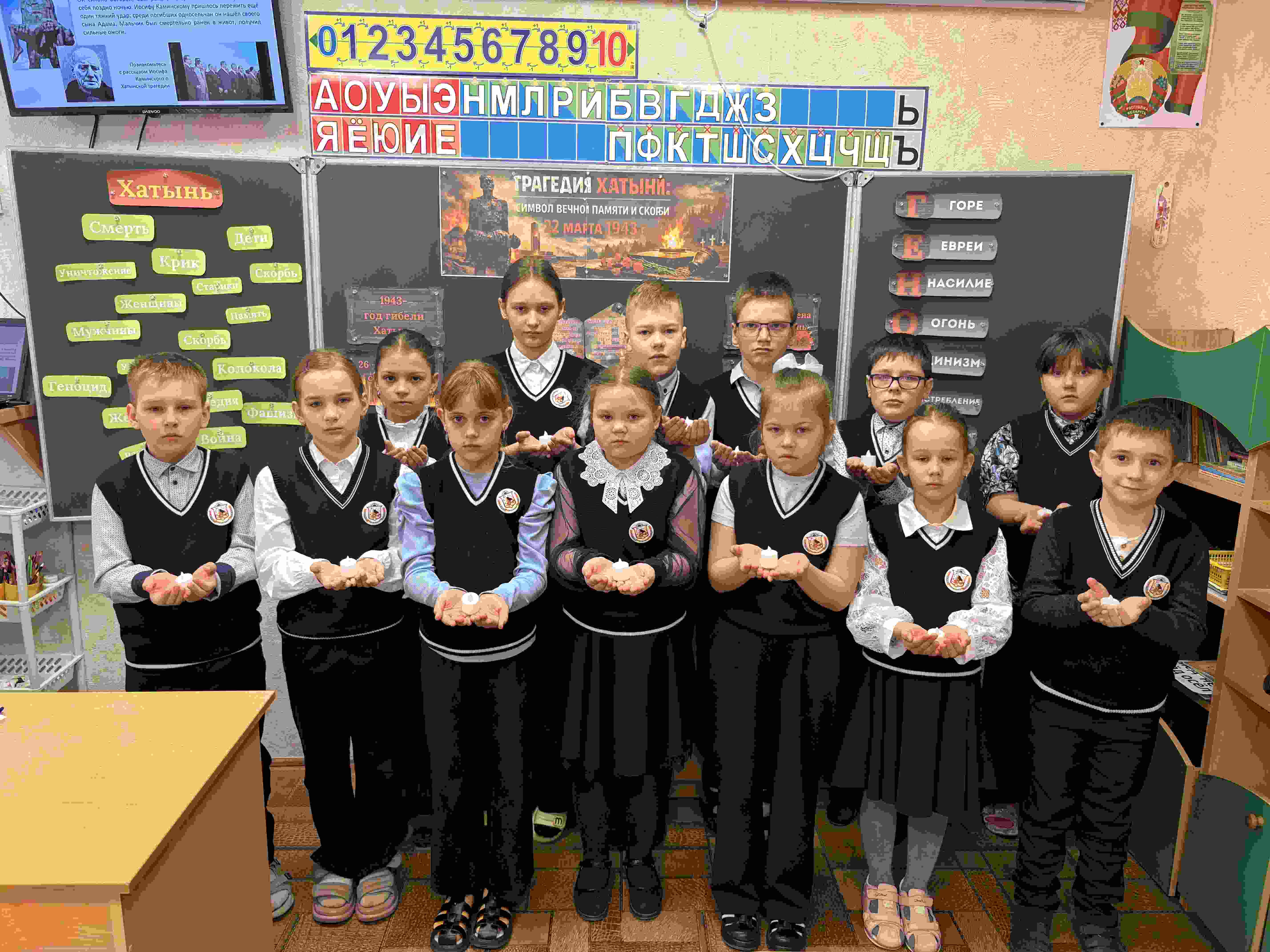 С целью углубления знаний учащихся об историческом прошлом белорусского народа, трагических событиях в Хатыни, фактах геноцида белорусского народа в годы Великой Отечественной войны, формирования отрицательного отношения к насилию также во всех учреждениях общего среднего образования Борисовского, Несвижского, Смолевичского, Стародорожского районов прошли единые уроки, посвященные годовщине трагедии в д. Хатынь.