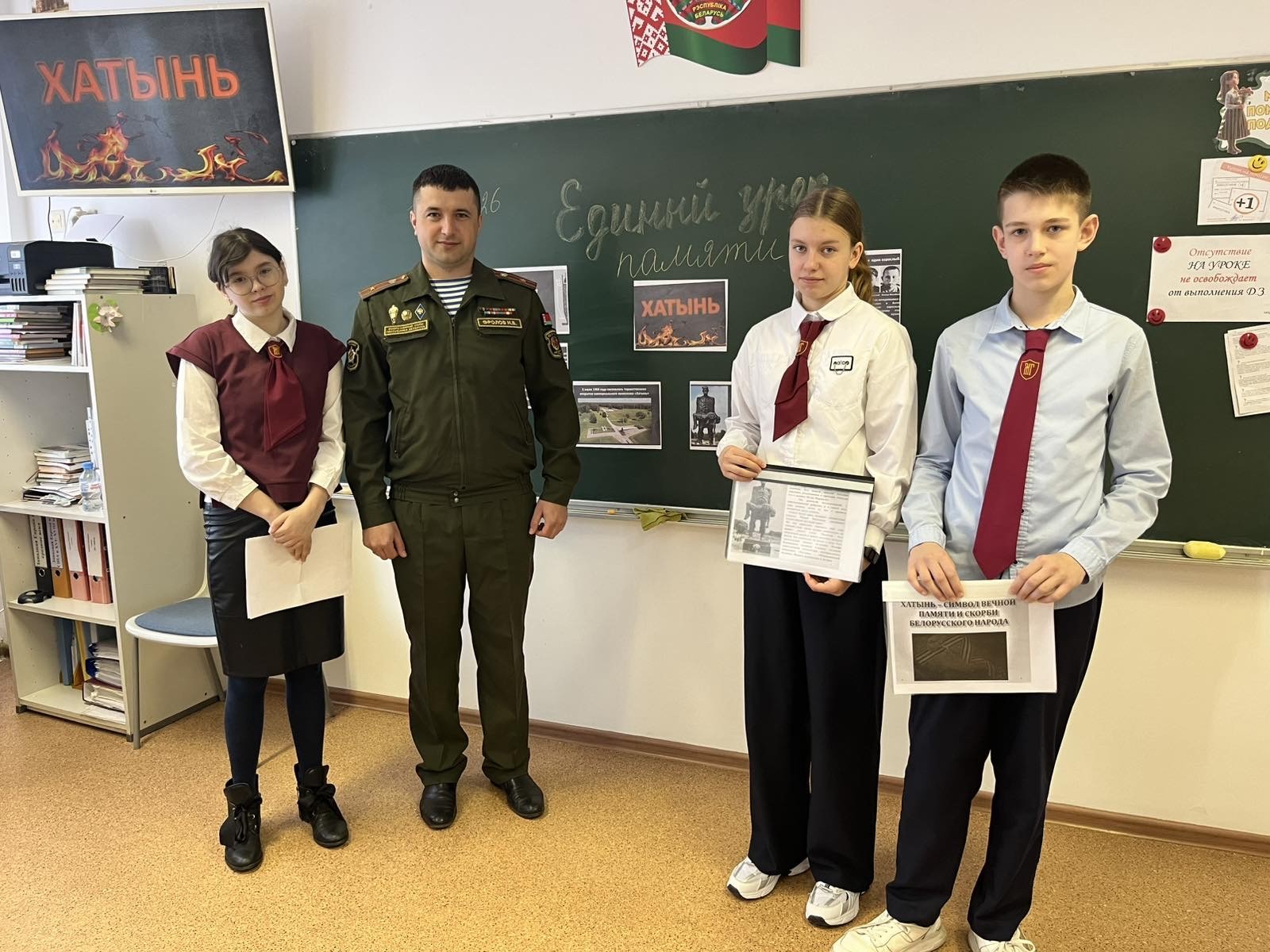 В учреждениях общего среднего образования Копыльского, Любанского, Молодечненского, Столбцовского, Узденского районов прошел Единый урок, посвященный трагедии в д. Хатынь в форме диалоговых площадок, устных журналов, уроков-реквиемов, виртуальных экскурсий в учебных кабинетах, актовых залах, школьных музеях. В проведении уроков приняли участие председатели сельских исполнительных комитетов, специалисты краеведческих музеев, первые секретари РК ОО БРСМ, представители духовенства, прокуратуры, воинских частей.