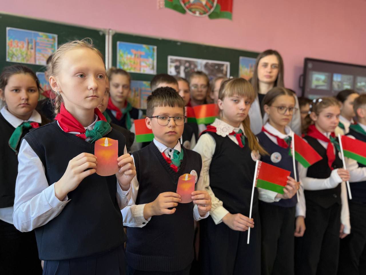 Единый урок, посвященный годовщине трагедии, прошел в каждом учреждении образования Минской области и охватил более 171 тысячи учащихся, педагогов и приглашенных гостей.