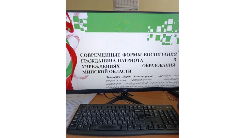 - Дубаневич Дарья Александровна, методист отдела сопровождения патриотического и экологического воспитания ГУО «Минский областной институт развития образования», презентовала участникам мероприятия современные формы воспитания гражданина-патриота в учреждениях образования Минской области.